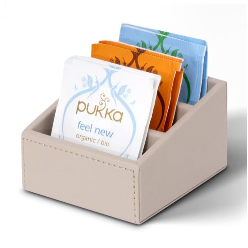 Suportul pentru pliculețe de ceai Lou, în nuanța natur, este completarea perfectă pentru orice tavă de bun venit.Îmbunătățiți experiența oaspeților oferindu-le ceaiurile preferate într-un suport elegant. Conceput atât pentru stil, cât și pentru funcționalitate, acesta expune și păstrează pliculețele de ceai cu rafinament, iar materialul hidrofug garantează că rămâne impecabil și ușor de curățat.