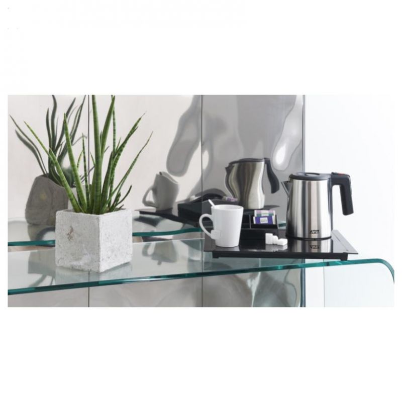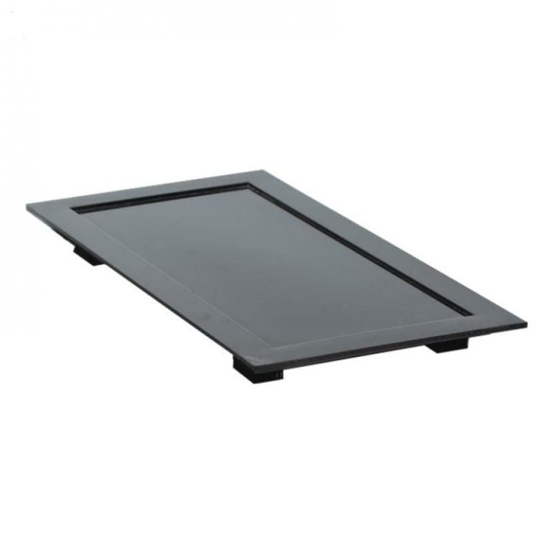Descriere: Tavă mare din melamină neagră, rezistentă la arsuri și cu finisaj anti-pete, proiectată pentru a susține și expune fierbătoare, pahare și recipiente pentru bun venit.