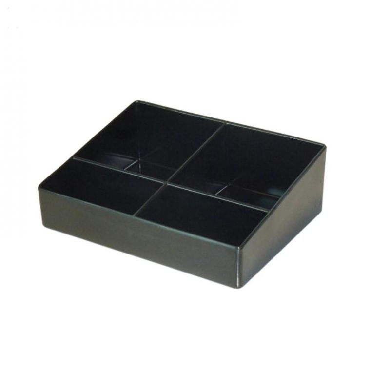 Descriere: Mică tavă din aceeași serie, destinată organizării plicurilor de zahăr, ceai sau alte mici recipiente, cu 4 compartimente pentru separare eficientă.