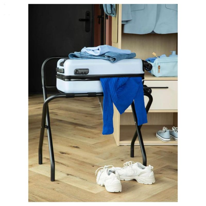 Suport pliabil hotelier pentru bagaje cu spătar – Mary II - negru